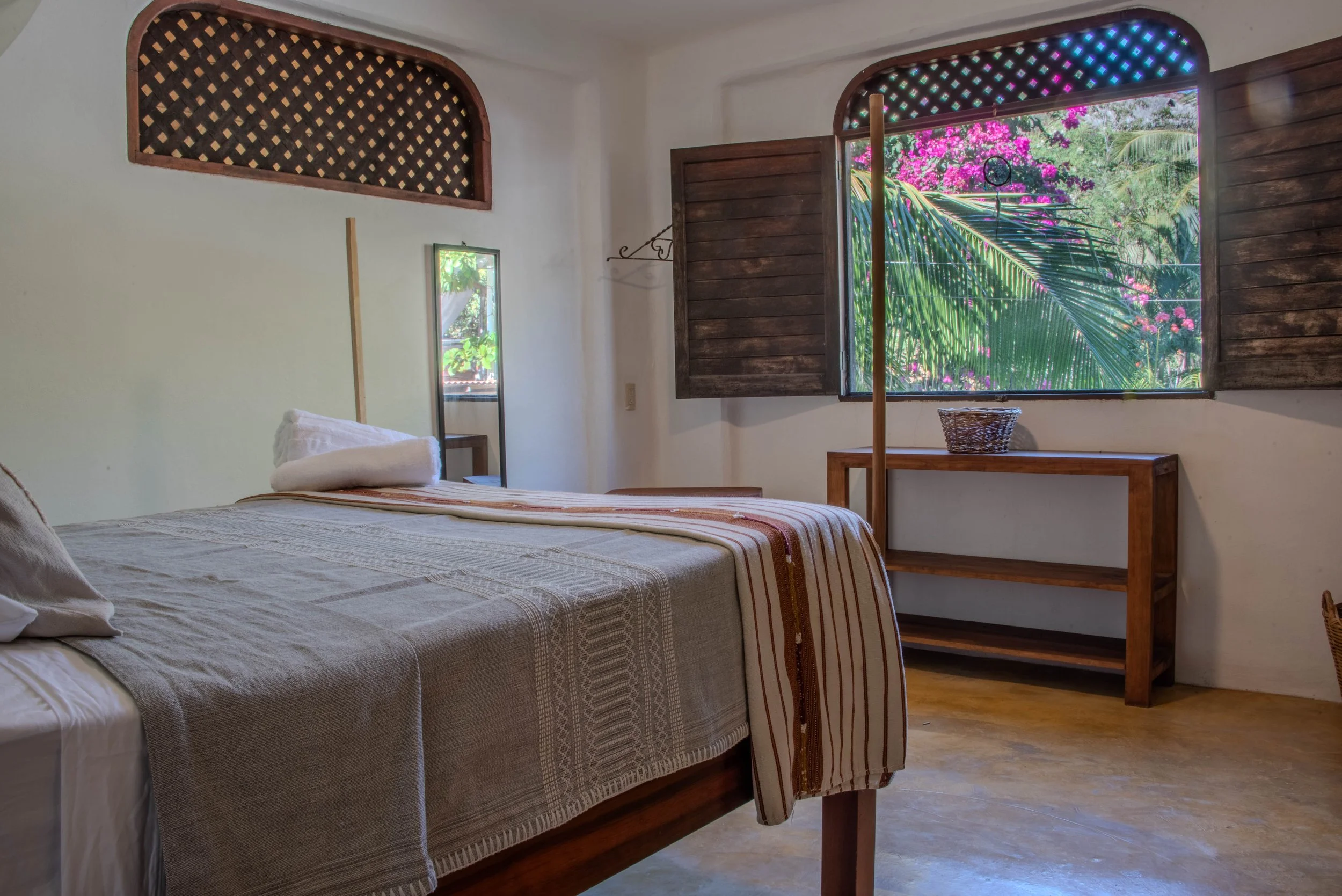 A peaceful retreat with high-thread-count linens, a ceiling fan, and charming artisanal accents inspired by Oaxaca’s coastal style.Private Terrace: